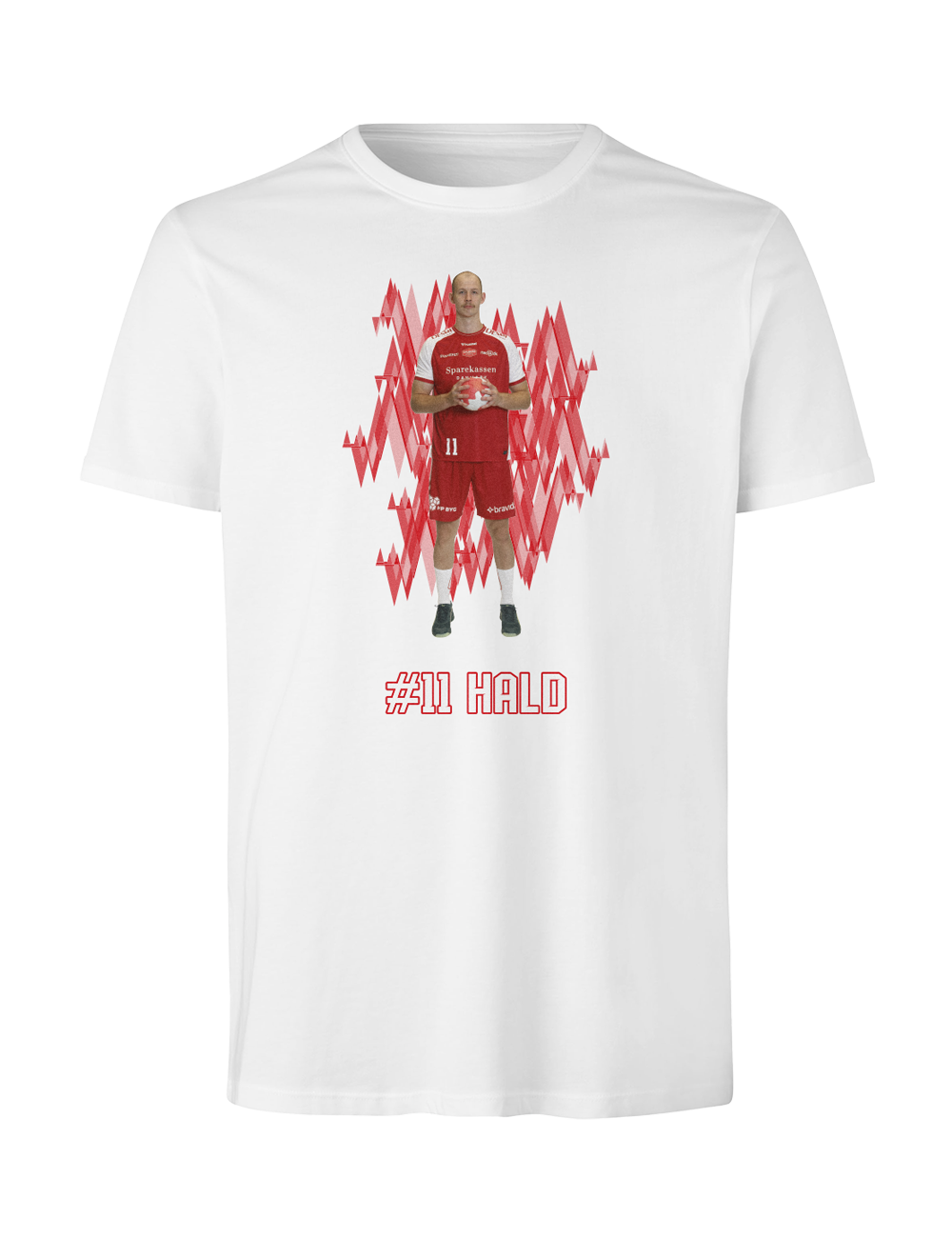 Støt Aalborg Håndbold og vis din opbakning til din favoritspiller med denne stilrene spiller t-shirt. Designet kombinerer et dynamisk grafisk udtryk med et motiv af spilleren samt spillerens navn og nummer under motivet.