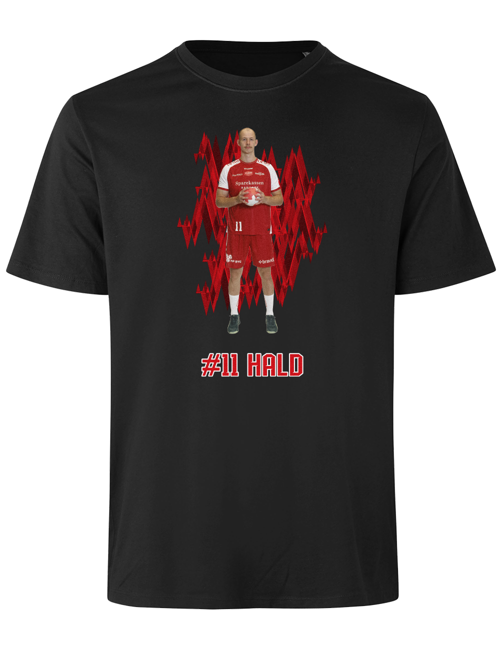 Støt Aalborg Håndbold og vis din opbakning til din favoritspiller med denne stilrene spiller t-shirt. Designet kombinerer et dynamisk grafisk udtryk med et motiv af spilleren samt spillerens navn og nummer under motivet.