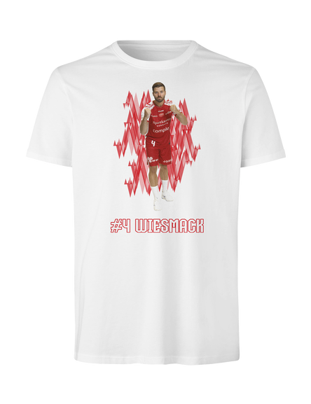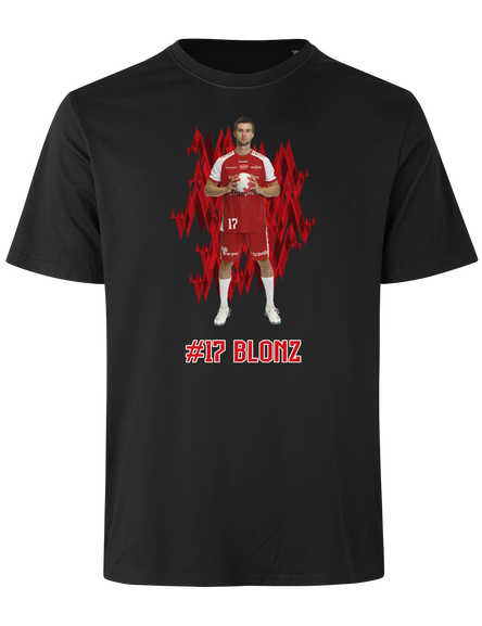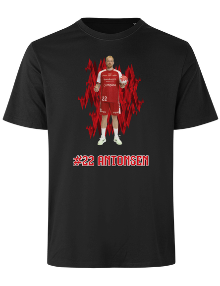 Støt Aalborg Håndbold og vis din opbakning til din favoritspiller med denne stilrene spiller t-shirt. Designet kombinerer et dynamisk grafisk udtryk med et motiv af spilleren samt spillerens navn og nummer under motivet.