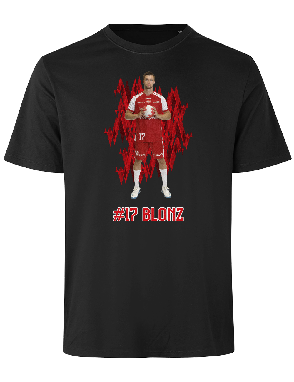 Støt Aalborg Håndbold og vis din opbakning til din favoritspiller med denne stilrene spiller t-shirt. Designet kombinerer et dynamisk grafisk udtryk med et motiv af spilleren samt spillerens navn og nummer under motivet.