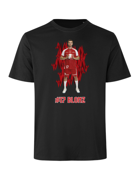 Støt Aalborg Håndbold og vis din opbakning til din favoritspiller med denne stilrene spiller t-shirt. Designet kombinerer et dynamisk grafisk udtryk med et motiv af spilleren samt spillerens navn og nummer under motivet.
