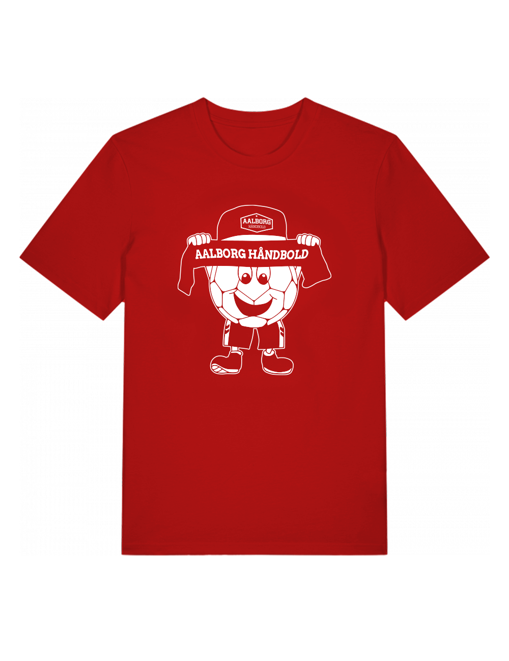 Den hvide børne t-shirt har et markant rødt frontprint med den smilende fan-bold iført kasket og halstørklæde. Et legende og energifyldt motiv, der hylder fællesskab og ægte fanstemning – i børnehøjde.