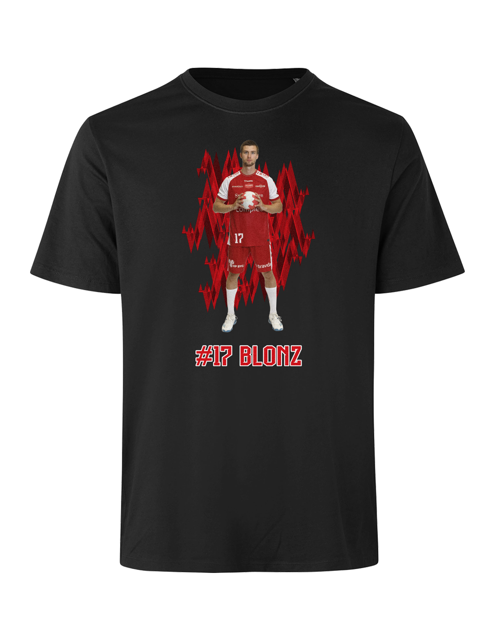 Støt Aalborg Håndbold og vis din opbakning til din favoritspiller med denne stilrene spiller t-shirt. Designet kombinerer et dynamisk grafisk udtryk med et motiv af spilleren samt spillerens navn og nummer under motivet.