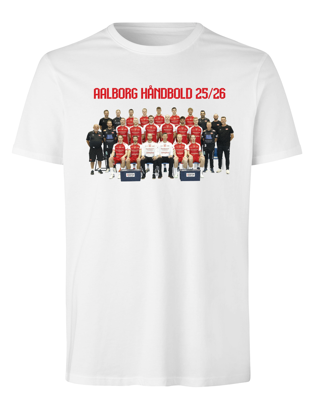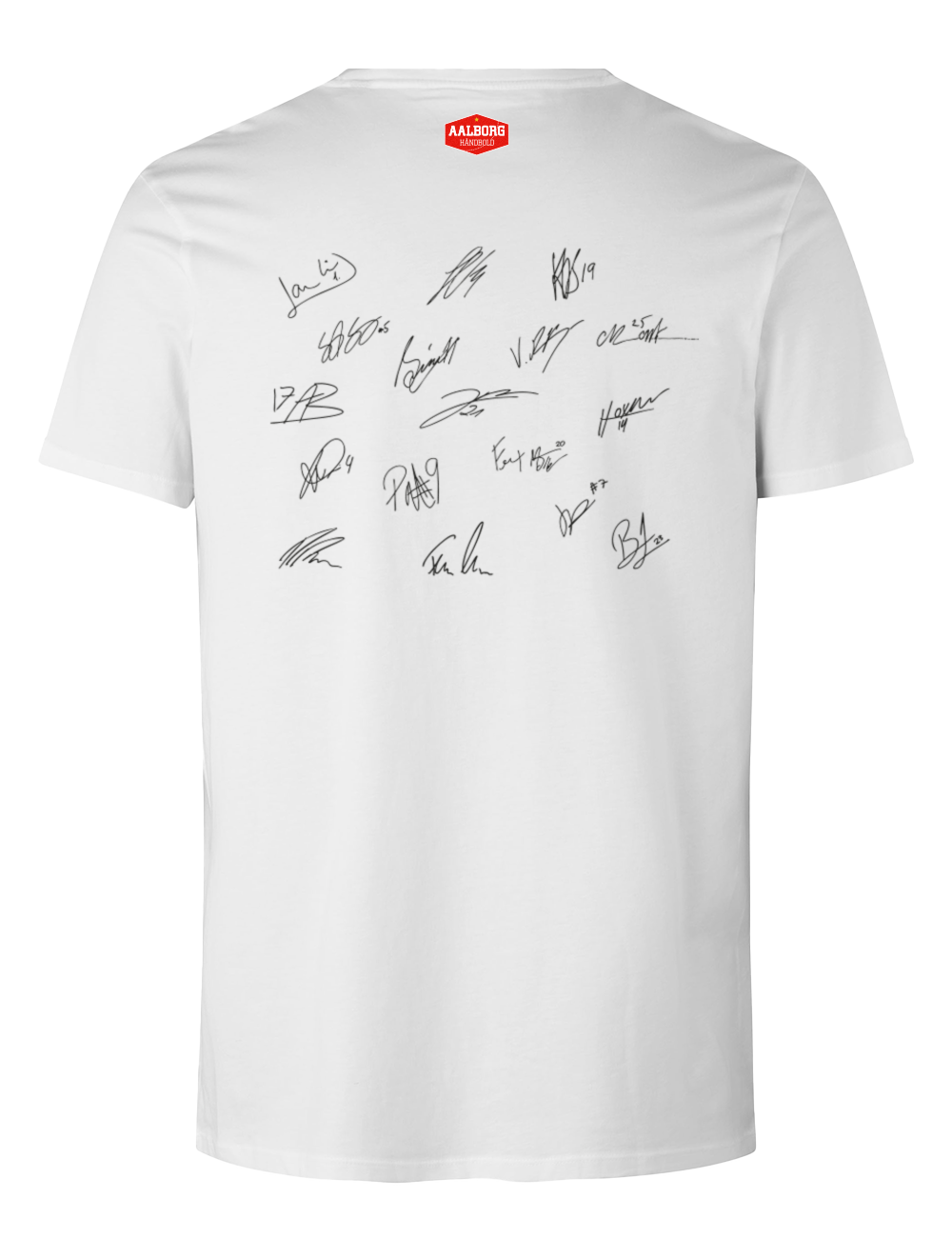 Show your support for Aalborg Handball with this unique t-shirt featuring the team from season 2025/2026. On the front, you will find a group photo of the player squad, while the back is adorned with the players' signatures – a perfect tribute to the team and the season.