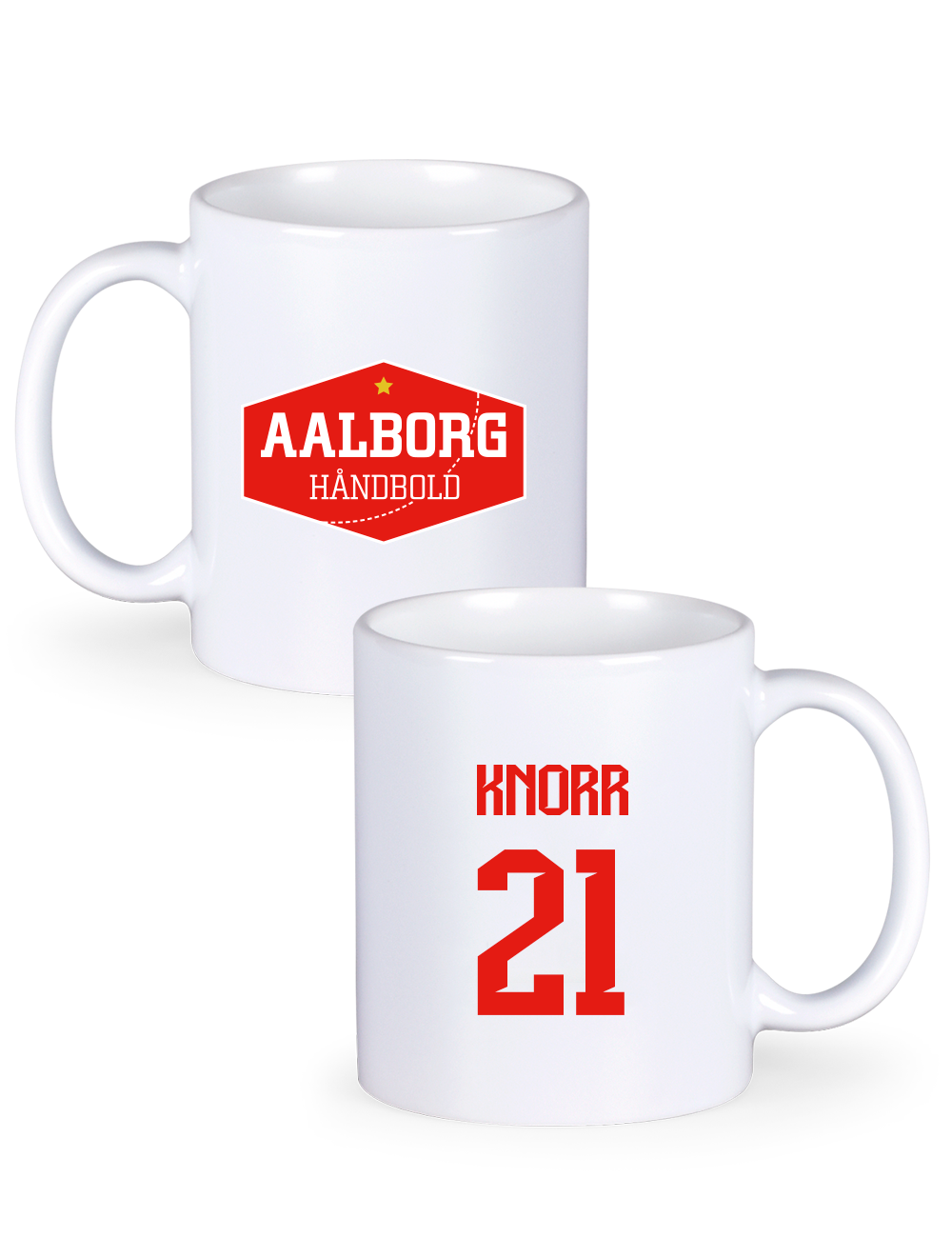 Krus med logo på den ene side og mulighed for tilkøb af navnetryk på den anden side.