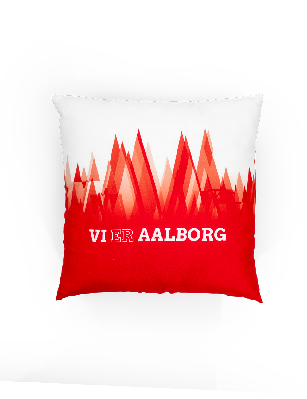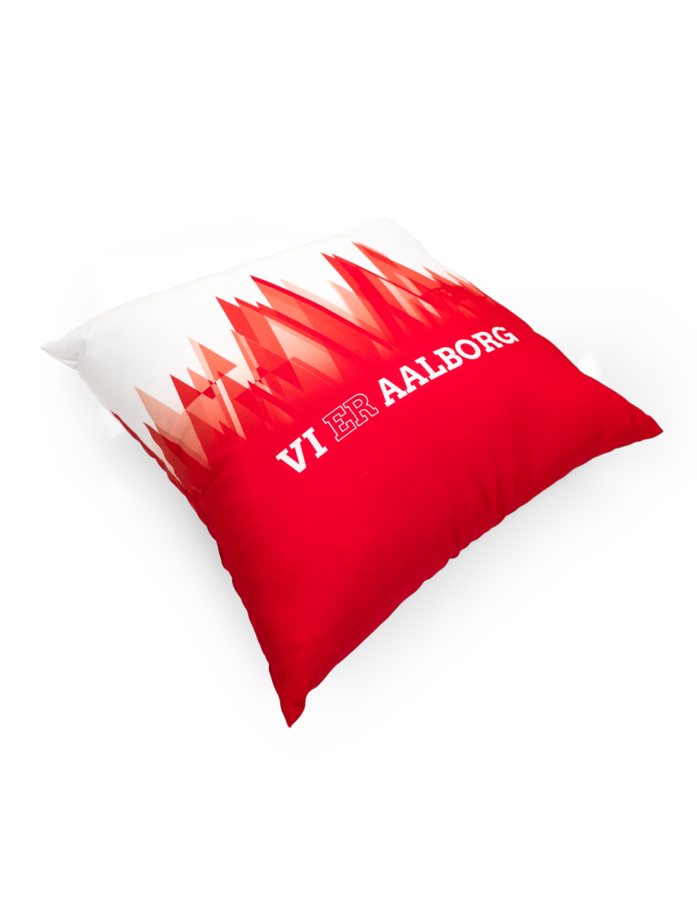 Pynt dit hjem med vores lækre pude, der er designet med vores ikoniske puls og farver. Pudens forside er prydet med vores logo, hvor der på bagsiden er påtrykt ’VI ER AALBORG’.