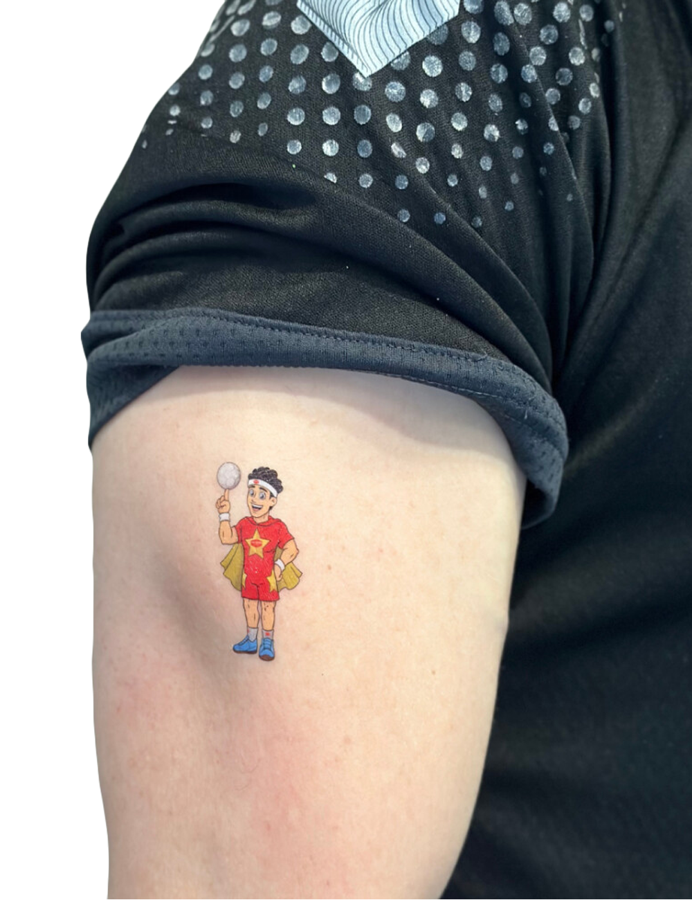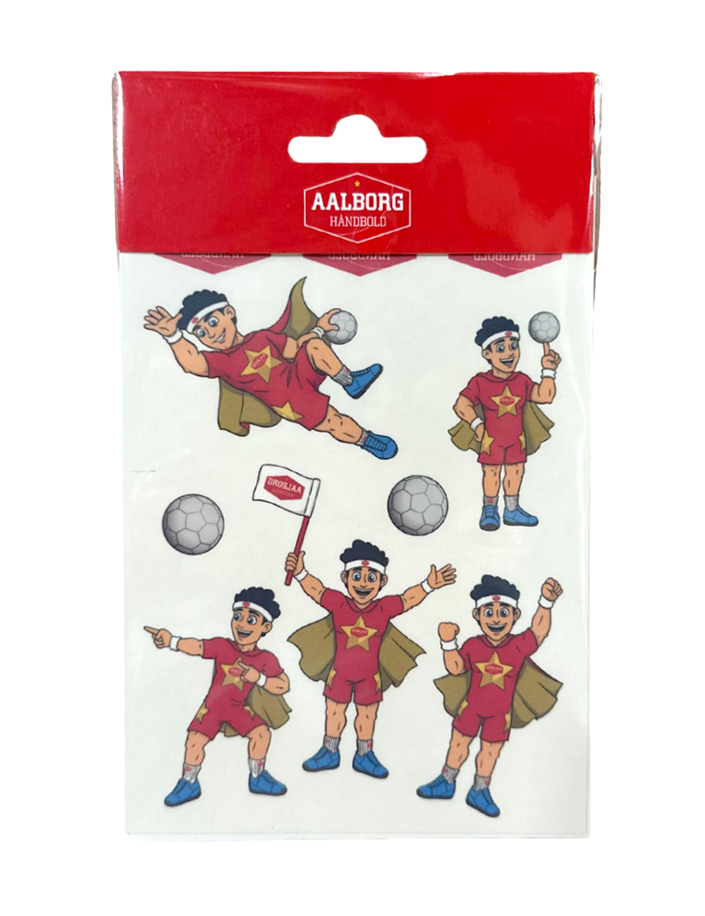 Vores tatoverings-ark indeholder 10 forskellige tatoveringer af vores logo og maskot, Aalstar. Tatoveringerne er let påførlige og er nemme at fjerne igen.