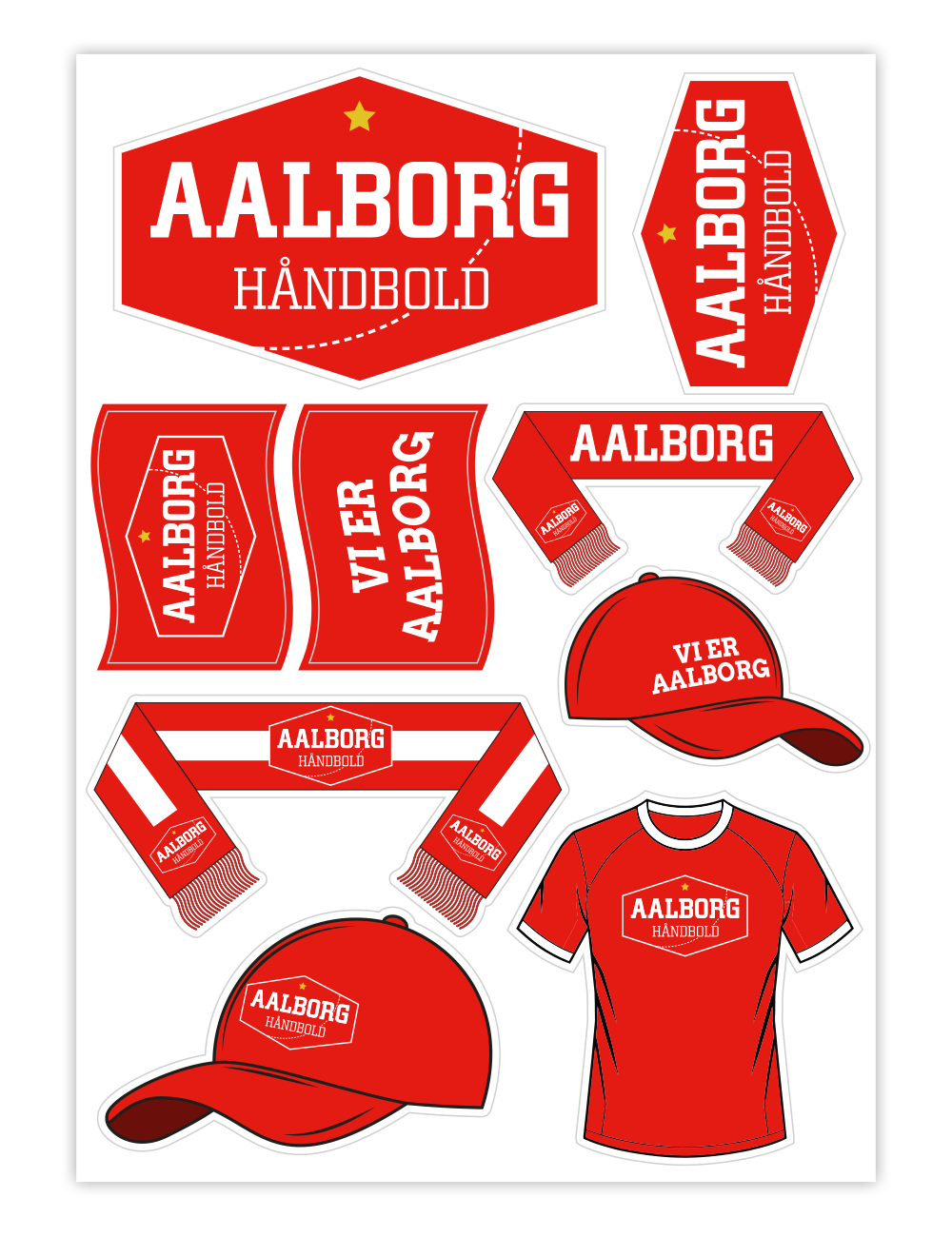 A5 klistermærkeark med 9 forskellige Aalborg Håndbold klistermærker.