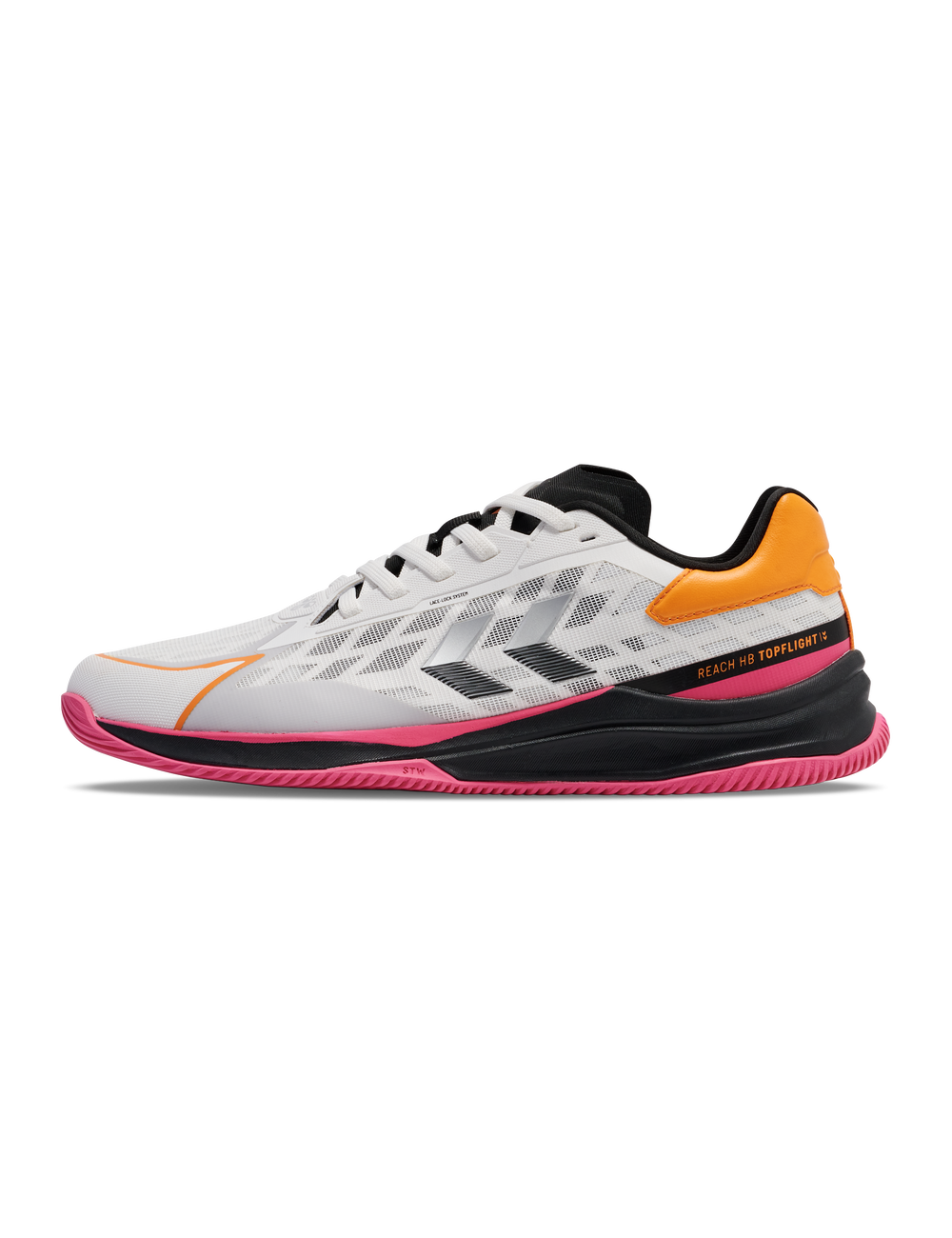 HB TOPFLIGHT PRO er skabt til krævende håndboldkampe og andre former for indendørssport. Skoen har en non-marking gummiydersål, der giver optimalt greb på alle typer indendørs underlag. Den lette og slidstærke TPU-overdel med hotmelt-teknologi sikrer en præcis og behagelig pasform. Perfekt til spillere, der har brug for maksimal støtte ved hurtige bevægelser og skarpe retningsskift.