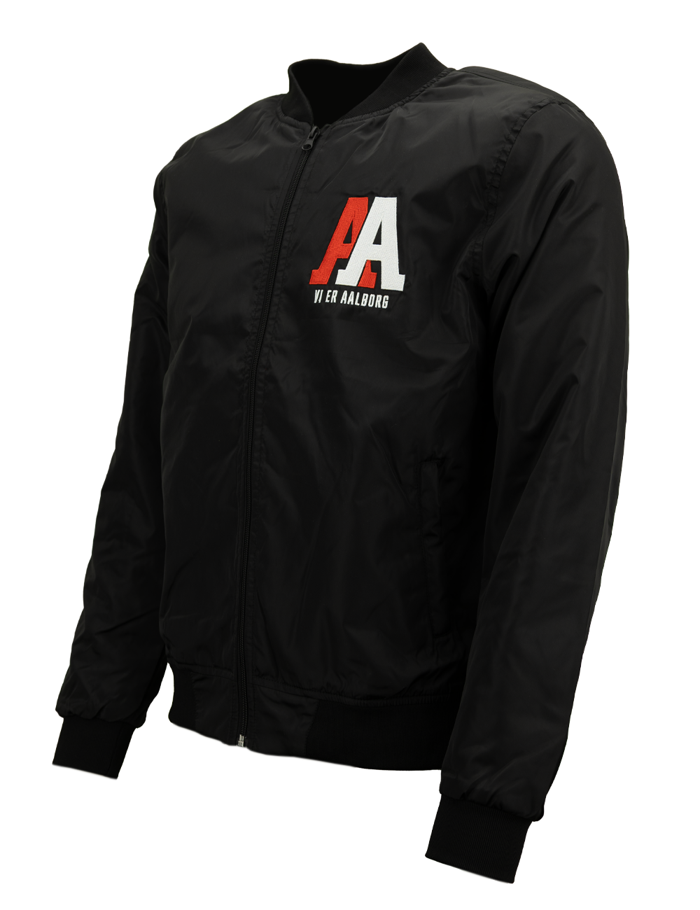 Denne bomber jacket kombinerer et klassisk, urbant udtryk med tydelig klubstolthed. Det broderede AA-logo med teksten “VI ER AALBORG” markerer klart dit tilhørsforhold til Aalborg Håndbold – både på kampdage og i hverdagen.