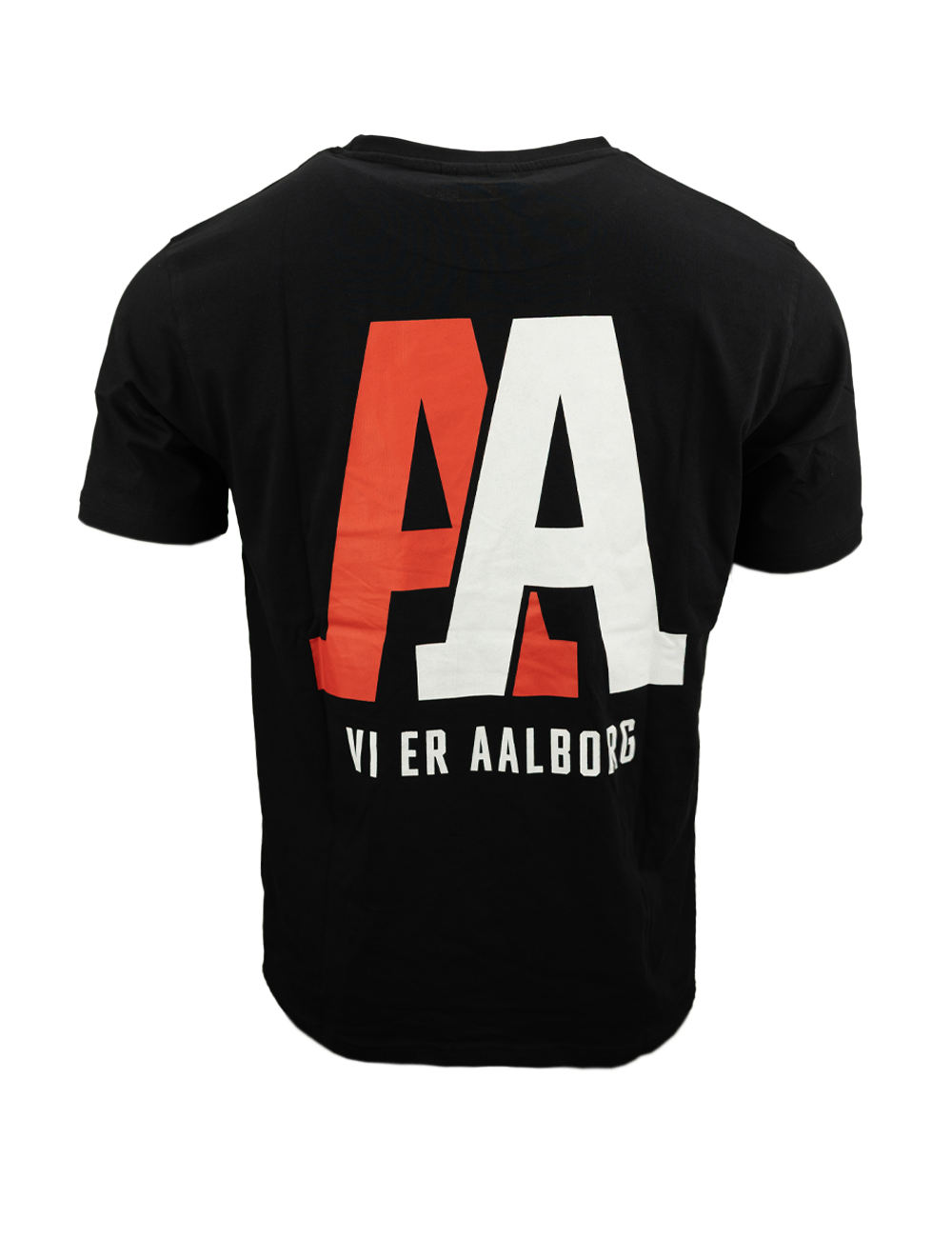 Denne klassiske t-shirt kombinerer et enkelt frontudtryk med markant klubidentitet på ryggen. På brystet sidder det diskrete AA-logo, mens ryggen prydes af et stort AA-tryk med teksten “VI ER AALBORG”, der tydeligt viser dit tilhørsforhold til Aalborg Håndbold.